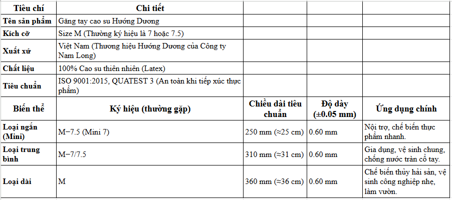 Thông Tin Chi Tiết Của Bao Tay Bảo Hộ Cao Su Hướng Dương Size M