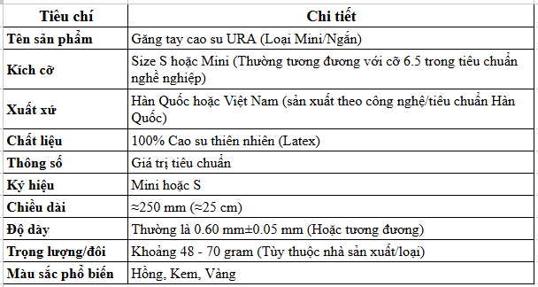 Thông Tin Chi Tiết Của Bao Tay Bảo Hộ Cao Su URA Size Mini
