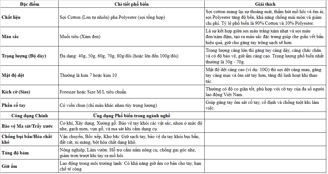 Thông Tin Chi Tiết Của Bao Tay Bảo Hộ Len Muối Tiêu