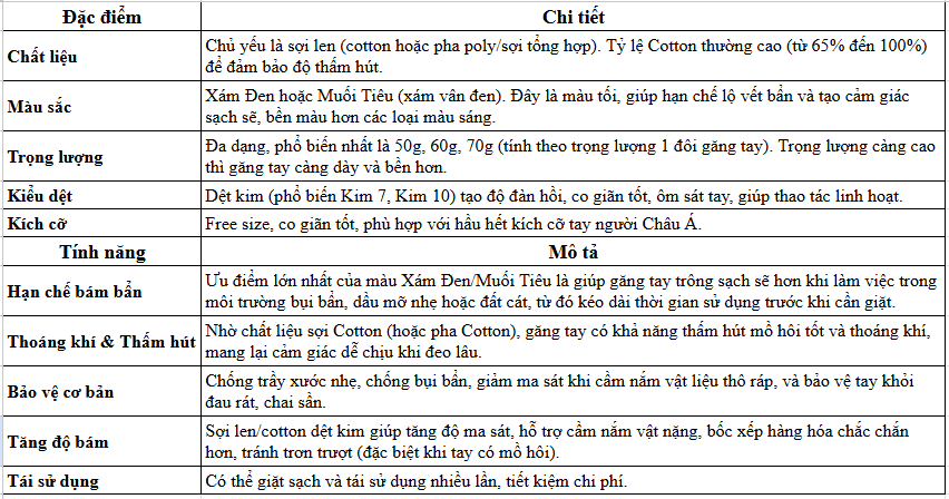 Đặc Điểm Của Bao Tay Bảo Hộ Len Sợi Màu Xám Đen