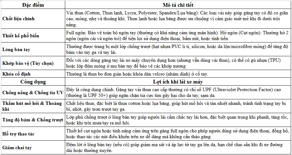 Vải thun có khả năng thấm hút mồ hôi tốt, giúp bàn tay luôn khô ráo và thoải mái trong suốt hành trình. Điều này giúp người lái không bị trượt tay khi điều khiển xe.