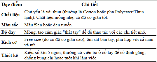 Thông Tin Chi Tiết Của Bao Tay Bảo Hộ Vải Thun Mỏng Màu Đen