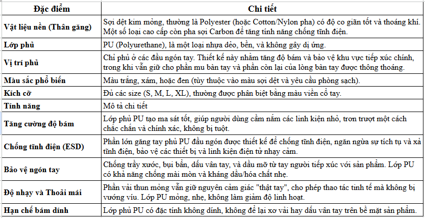 Thông Tin Chi Tiết Của Bao Tay Bảo Hộ Vải Thun Phủ PU Ngón Tay
