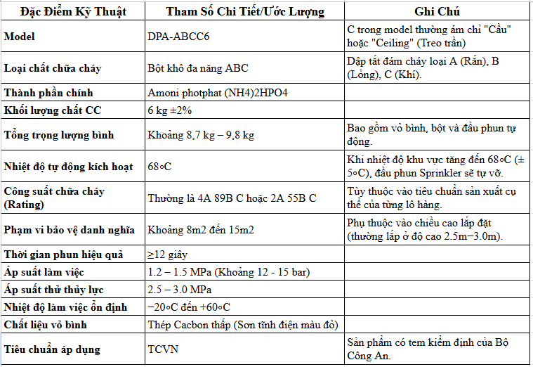 Thông Số Kỹ Thuật Của Bình Cầu Chữa Cháy Bột ABC 6Kg Dolphin DPA-ABCC6