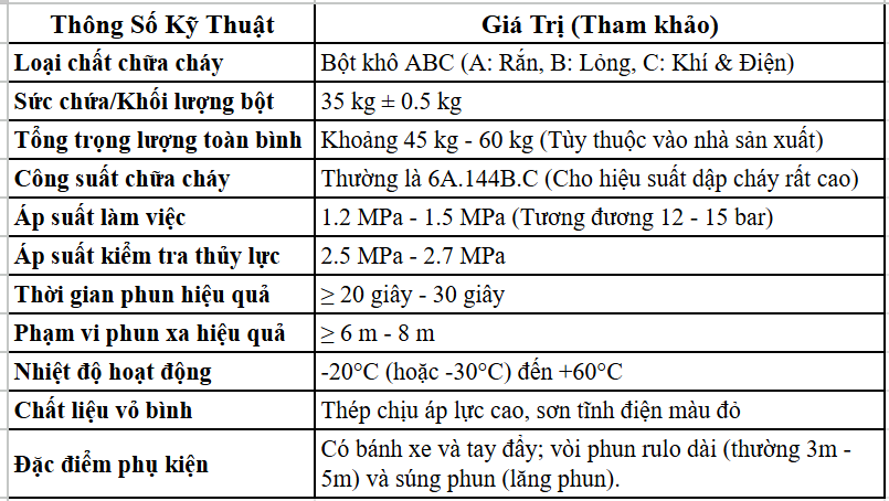 - Dung tích: Với dung tích 35Kg, bình có khả năng chứa một lượng lớn bột chữa cháy, giúp dập tắt các đám cháy lớn hơn.