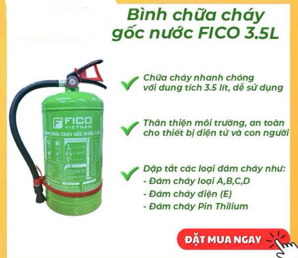 Hãy đặt hàng ngay hôm nay để sở hữu cho mình một chiếc bình chữa cháy gốc nước FICO FC-103-WB 3.5 Lít, mang lại sự yên tâm và bảo vệ cho cuộc sống của bạn.
