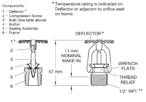 ✔️Đặc biệt, Đầu phun chữa cháy sprinkler có nhiệt độ kích hoạt được mã hóa theo màu sắc trên bầu thủy tinh của đầu phun, nhiệt độ kích hoạt tương ứng là vấn đề mấu chốt trong việc vận hành kiểm soát hệ thống hoạt động theo yêu cầu đề ra, đối với khu dân cư nơi đòi khỏi an toàn cao người ta sử dụng loại đầu phun sprinkler phản ứng nhanh ( thời gian đáp ứng, kích hoạt khi thay đổi nhiệt độ rất nhanh )