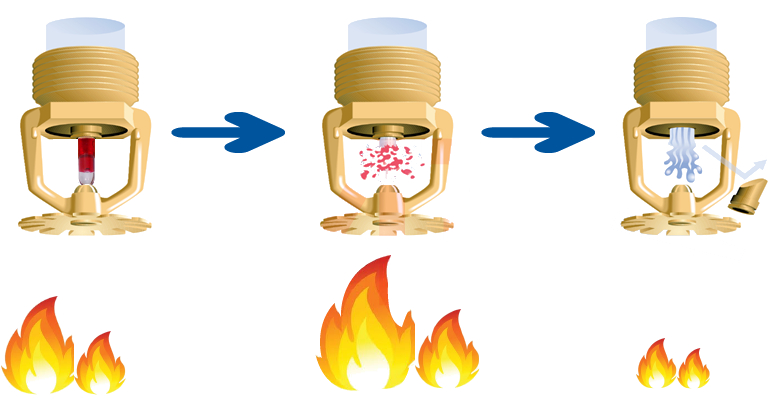 - Mỗi đầu phun chữa cháy sẽ hoạt động riêng biệt với nhau, khi đạt đến nhiệt độ đã được ấn định sẵn thì các thiết bị sẽ bắt đầu hoạt động để chữa cháy. Phần lớn các đầu phun Sprinkler phun được 80 – 100 lít/phút, điều này còn phụ thuộc vào thiết kết của hệ thống. Một số loại đầu phun Sprinkler đặc biệt được thiết kế cho phép phun lên đến 400 lít/phút.