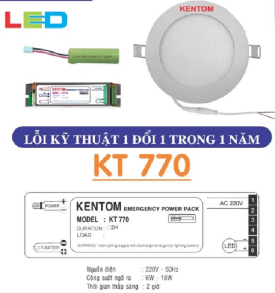 ⭐Đèn led âm trần khẩn cấp Kentom KT 770 6w, 9w