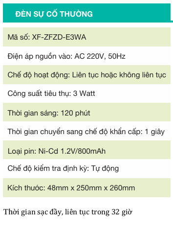 Thông Số Kỹ Thuật Của Đèn Chiếu Sáng Sự Cố XF-ZFZD-E3WA LILANG
