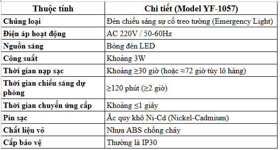 Thông Số Kỹ Thuật Của Đèn Chiếu Sáng Sự Cố YIFEI Có Kiểm Định