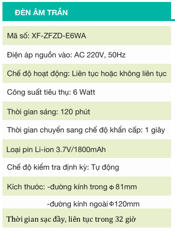 Thông Số Kỹ Thuật Của Đèn Sự Cố Âm Trần XF-ZFZD-E6WA LILANG