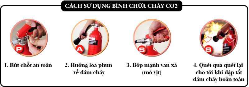 + Khí CO2 được nén chặt trong bình với áp suất cao sẽ chuyển sang thể lỏng nên khi chữa cháy chỉ vặn van hay rút chốt bóp cò là khí CO2 sẽ phun ra dập tắt đám cháy.