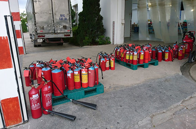 Bình chữa cháy được trang bị và chưa sử dụng nhưng đã hết thời hạn bảo hành.