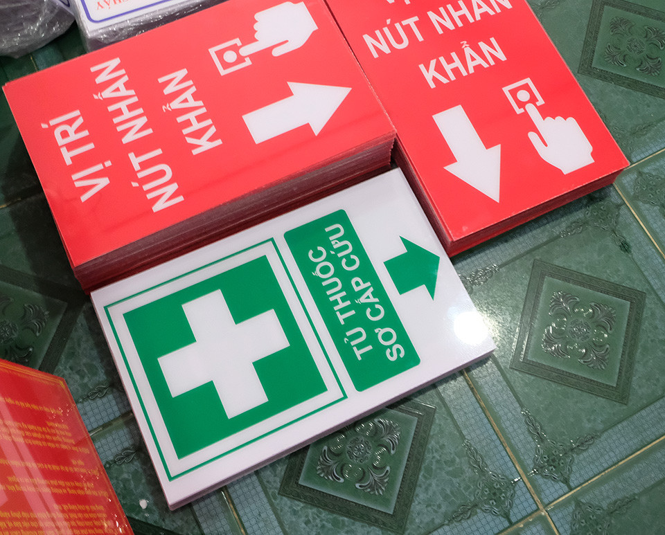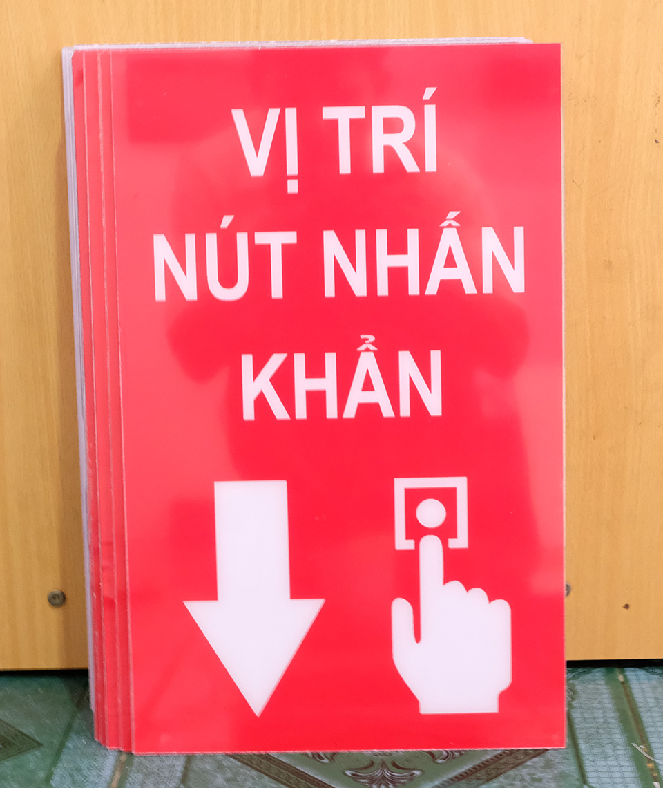 BIỂN BÁO VỊ TRÍ NÚT NHẤN KHẨN CHẤT LIỆU MICA