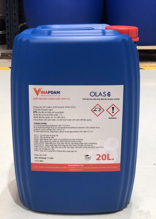 OLAS 6 là chất tạo bọt chữa cháy cô đặc AFFF được tạo ra từ hỗn hợp chất hoạt động bề mặt gốc flo và chất hoạt động bề mặt gốc hydrocacbon cùng với các dung môi và phụ gia tính năng khác.