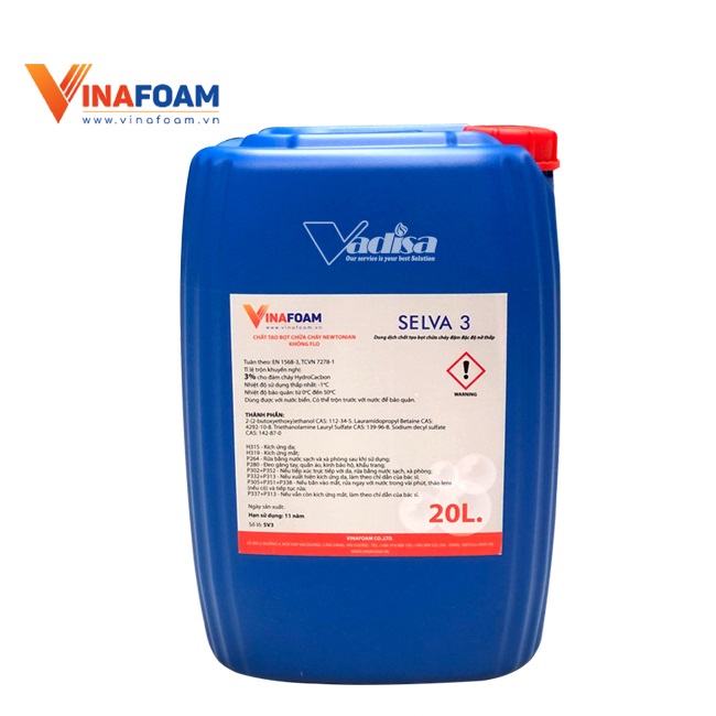 – SELVA 3 là sản phẩm bọt chữa cháy cô đặc không chứa flo, độ nhớt thấp được dùng để dập tắt đám cháy có nguồn gốc hydrocacbon và đám cháy chất rắn.
