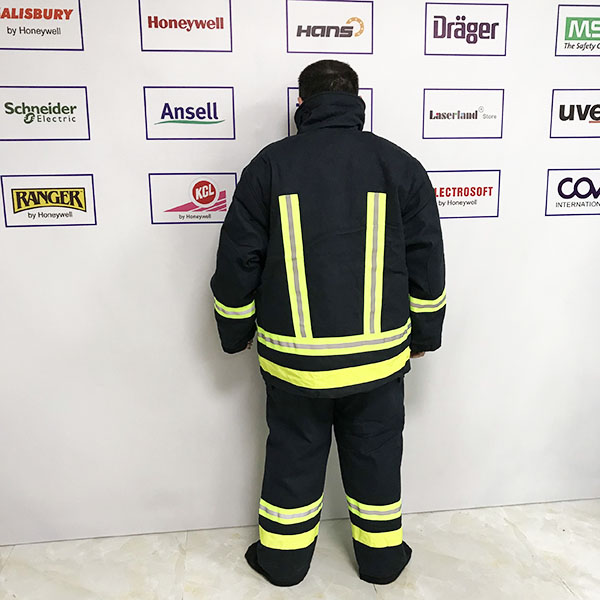 - Bộ quần áo chống cháy Nomex 4 lớp 700 độ có áo thuộc kiểu dài tay, cổ bẻ. Khóa áo kéo thẳng đứng nằm ẩn phía bên trong, chỉ nhìn thấy đường may bên ngoài. Thân áo có 2 dải phản quang khổ rộng 05 cm; gấu áo bẻ cuộn 02 cm. Quần có 2 túi hộp bên hông quần, có viền phát quang rộng 5cm và có 2 dây đeo lên vai. Bộ áo quần được gia cố thêm các băng dính, gia tăng độ ổn định khi mặc. Sản phẩm được thiết kế và may chuyên dùng cho lính cứu hoả, công nhân làm việc trong khai thác hầm mỏ, dầu khí, môi trường hoá chất độc hại.