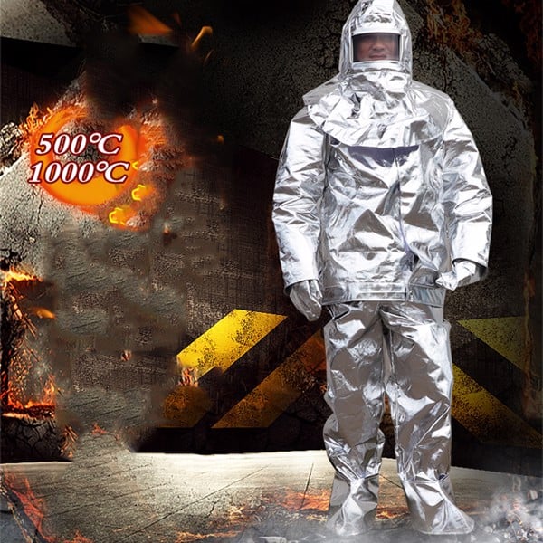 Áo Chống Cháy Tráng Nhôm Chịu Nhiệt 500 Độ bao gồm: áo + quần chống cháy, găng tay cách nhiệt, mũ trùm đầu + giày . Đặc biệt áo quần chống cháy chịu được sức nóng tỏa ra nhiệt độ từ 500 độ C, hay khu vực nhiệt độ cao gần ngọn lửa.