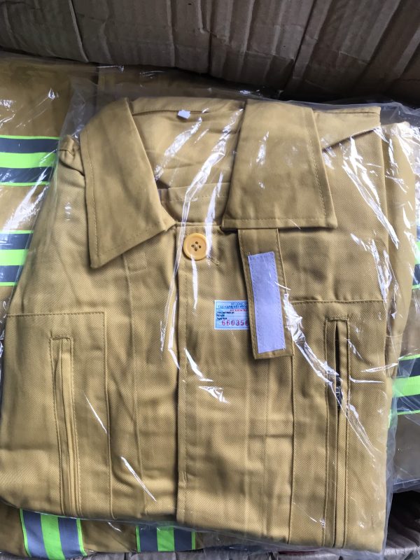 Nguyên bộ quần áo chữa cháy theoThông Tư 48 bao gồm: quần, áo, ủng ,mũ, găng tay, khẩu trang ,có đầy đủ tem kiểm định của cục cảnh sát PCCC.