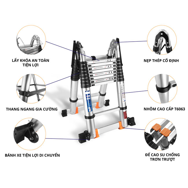 ✔️Thang nhôm rút đôi chữ A có tính năng điều chỉnh chiều dài thang linh hoạt như thang nhôm rút đơn và độ chắc chắn của thang nhôm chữ A. Bạn có thể mang vác, di chuyển thang đến nơi làm việc một cách đơn giản, thang cũng dễ dàng được bảo quản tại những nơi chật hẹp mà không chiếm quá nhiều diện tích.