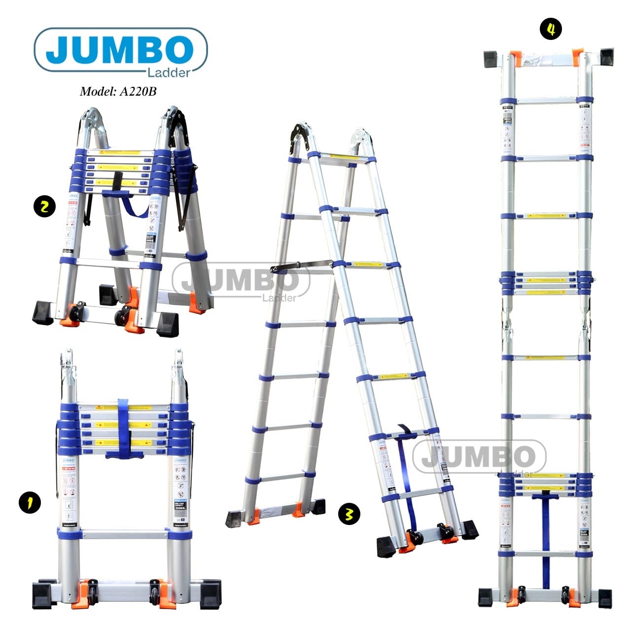 Thang rút nhôm đôi JUMBO được nhập khẩu 100% từ nước ngoài, và được sản xuất trên công nghệ dây chuyền hiện đại của Nhật. Sản phẩm luôn đạt các tiêu chuẩn chất lượng hàng đầu của Châu Âu.