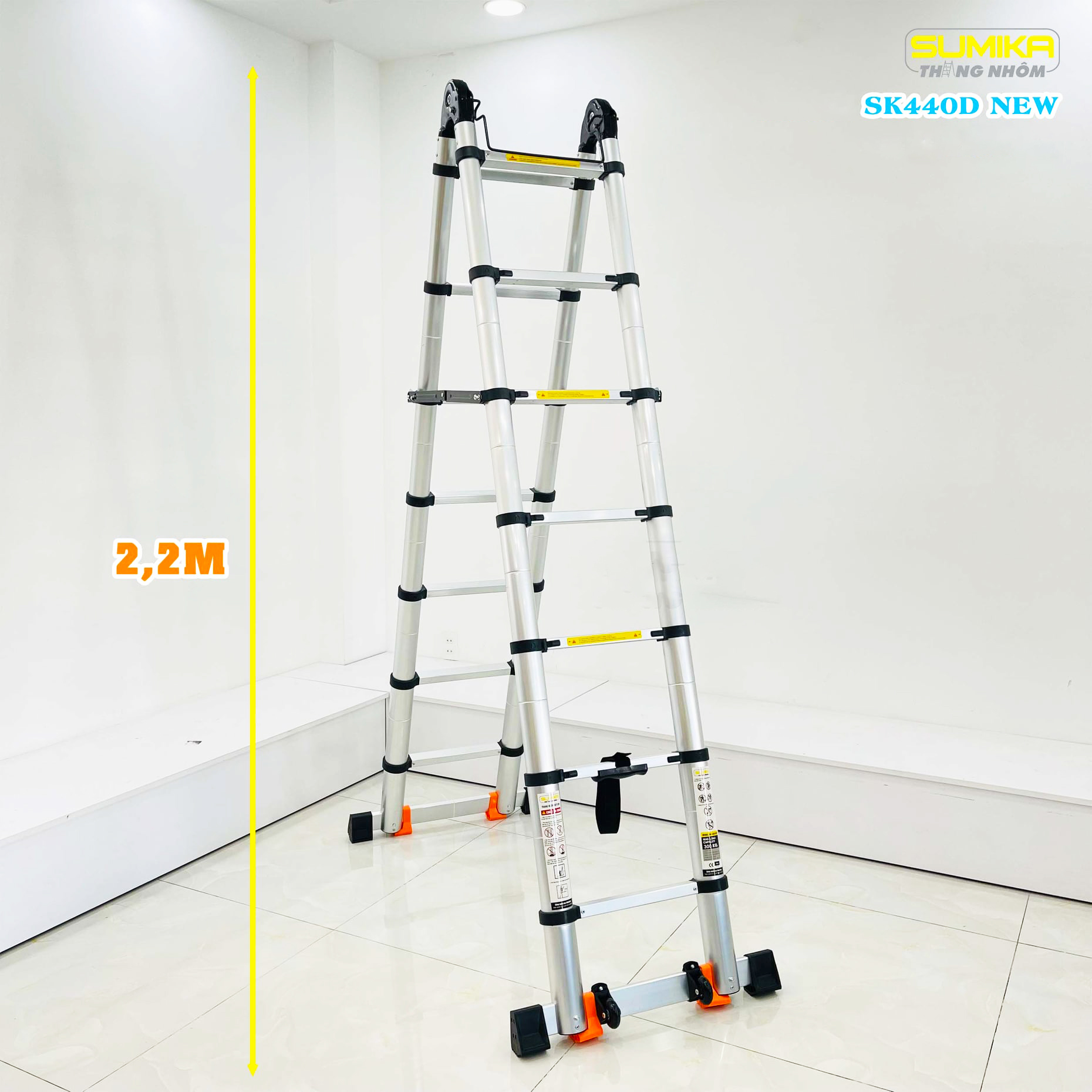 Thang nhôm rút đôi Sumika được thiết kế dạng anten gọn nhẹ, có thể thu ngắn dài tùy theo nhu cầu sử dụng. Ngoài ra thang có thể gấp chữ A , L , I và sử dụng cho mọi địa hình. Thang có thể rút gọn 88cm khi không sử dụng, ít chiếm không gian và diện tích cất giữ.
