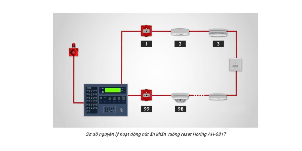 PCCC Niềm Tin Việt chuyên cung cấp Nút Nhấn Khẩn Vuông Reset AH-0817 Horing