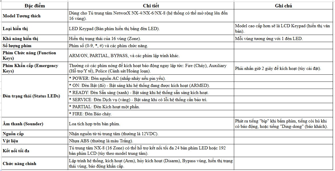 Thông Số Chi Tiết Của Bàn Phím Tủ Trung Tâm Báo Cháy NETWORX NX-16
