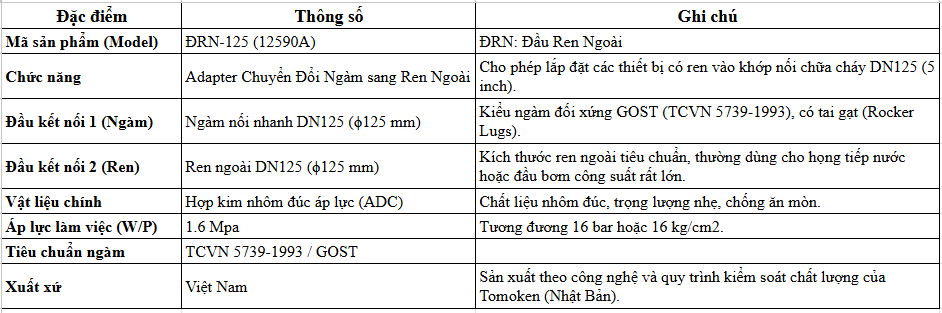Thông Số Chi Tiết Của Đầu Nối Ren Ngoài ĐRN-125 Tomoken 12590A