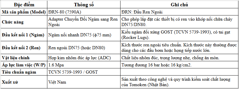 Thông Số Chi Tiết Của Đầu Nối Ren Ngoài ĐRN-80 Tomoken 7590A