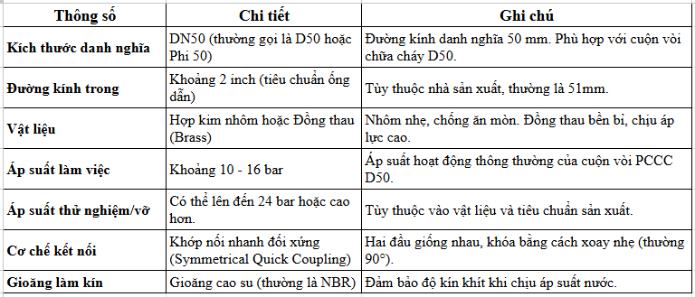 Thông Số Chi Tiết Của Đầu Nối Vòi Chữa Cháy DN50 Kiểu Đức Storz