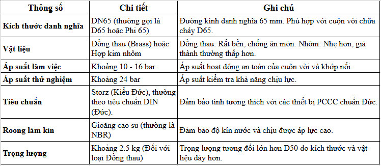Thông Số Chi Tiết Của Đầu Nối Vòi Chữa Cháy DN65 Kiểu Đức Storz