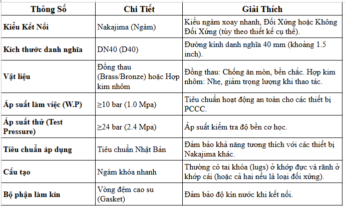 Thông Số Kỹ Thuật Của Khớp Nối Nhanh DN40 NAKAJIMA Kiểu Nhật Bản