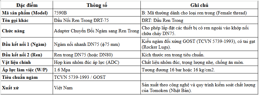 Thông Số Chi Tiết Của Khớp Nối Ren Trong DN75 Tomoken 7590B