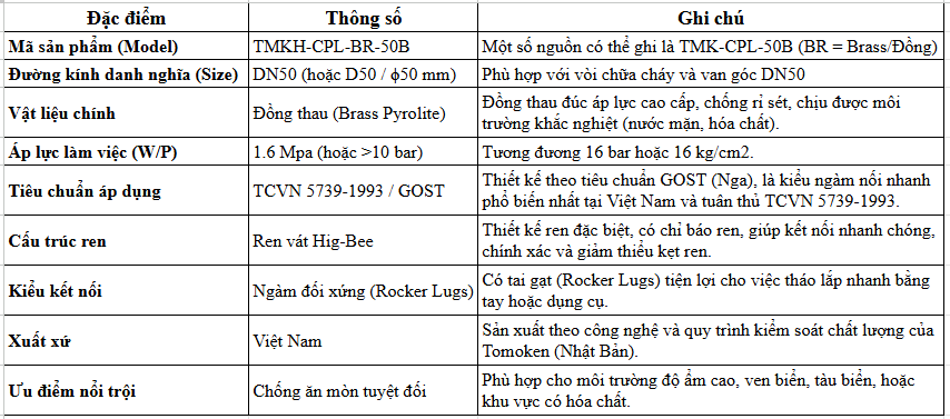 Thông Số Chi Tiết Của Khớp Nối Vòi Đồng DN50 Tomoken TMK-CPL-BR-50B
