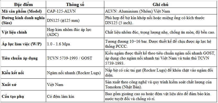 Đặc Điểm Nổi Bật Của Nắp Bịt Tomoken DN125 CAP-125-ALVN