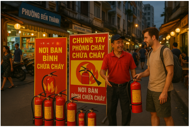 Công an Phường Bến Thành thường xuyên kết hợp UBND phường tổ chức “Ngày hội Toàn dân PCCC”. Khi tham gia, bạn sẽ được huấn luyện miễn phí cách sử dụng bình, thang dây, đèn pin định vị, khẩu trang phòng khói độc. Bên cạnh đó, việc trang bị bình đúng chuẩn tại nhà, nơi làm việc không chỉ cứu chính bạn mà còn ngăn lửa lan sang hàng xóm, hạn chế thiệt hại chung. Ý thức cộng đồng càng cao, phường càng an toàn, kinh doanh càng phát triển bền vững.
