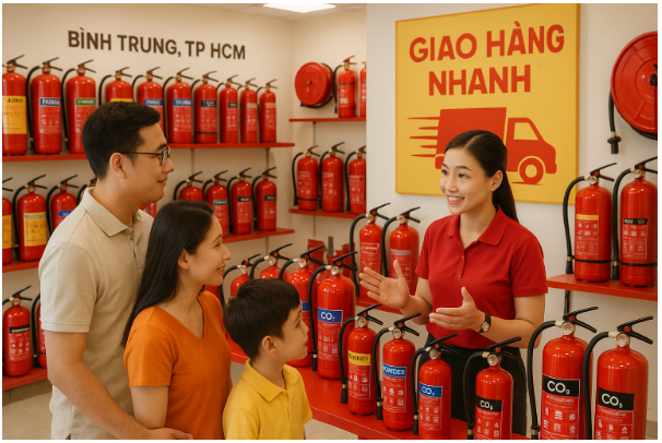 - Dễ mua, dễ dùng: Bán Bình Chữa Cháy Tại Phường Bình Trung TPHCM đang triển khai dịch vụ giao tận nơi trong một giờ và kèm hướng dẫn trực tiếp, giúp ai cũng có thể kích hoạt nhanh chóng khi cần.