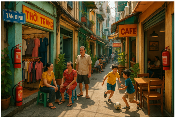 Phường Tân Định – quận 1, TP.HCM – được biết đến là một khu vực sầm uất với nhịp sống đô thị đặc trưng: những con hẻm đông đúc nhà ở xen lẫn cửa hàng kinh doanh, các tuyến phố thời trang, tòa nhà văn phòng, quán ăn và quán cà phê hoạt động thâu đêm. Mật độ dân cư cao, hạ tầng điện – gas – xăng dầu cùng lượng phương tiện giao thông dày đặc tạo nên nguy cơ cháy nổ luôn thường trực. Thống kê của Phòng Cảnh sát PCCC & CNCH TP.HCM cho thấy, chỉ riêng khu trung tâm (gồm quận 1 và quận 3) mỗi năm ghi nhận hàng trăm sự cố chập điện, cháy bếp gas, cháy bảng hiệu đèn LED, cháy kho chứa hàng. Trong số đó, không ít vụ diễn ra tại những con hẻm nhỏ khiến xe chữa cháy khó tiếp cận, hậu quả thiệt hại về người và tài sản tăng cao.