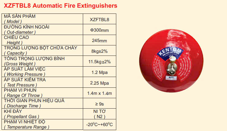Đặc Điểm Nổi Bật Bình Cầu Chữa Cháy Tự Động XZFTBL8 Bột ABC 8kg Kentom Có Kiểm Định bộ công an