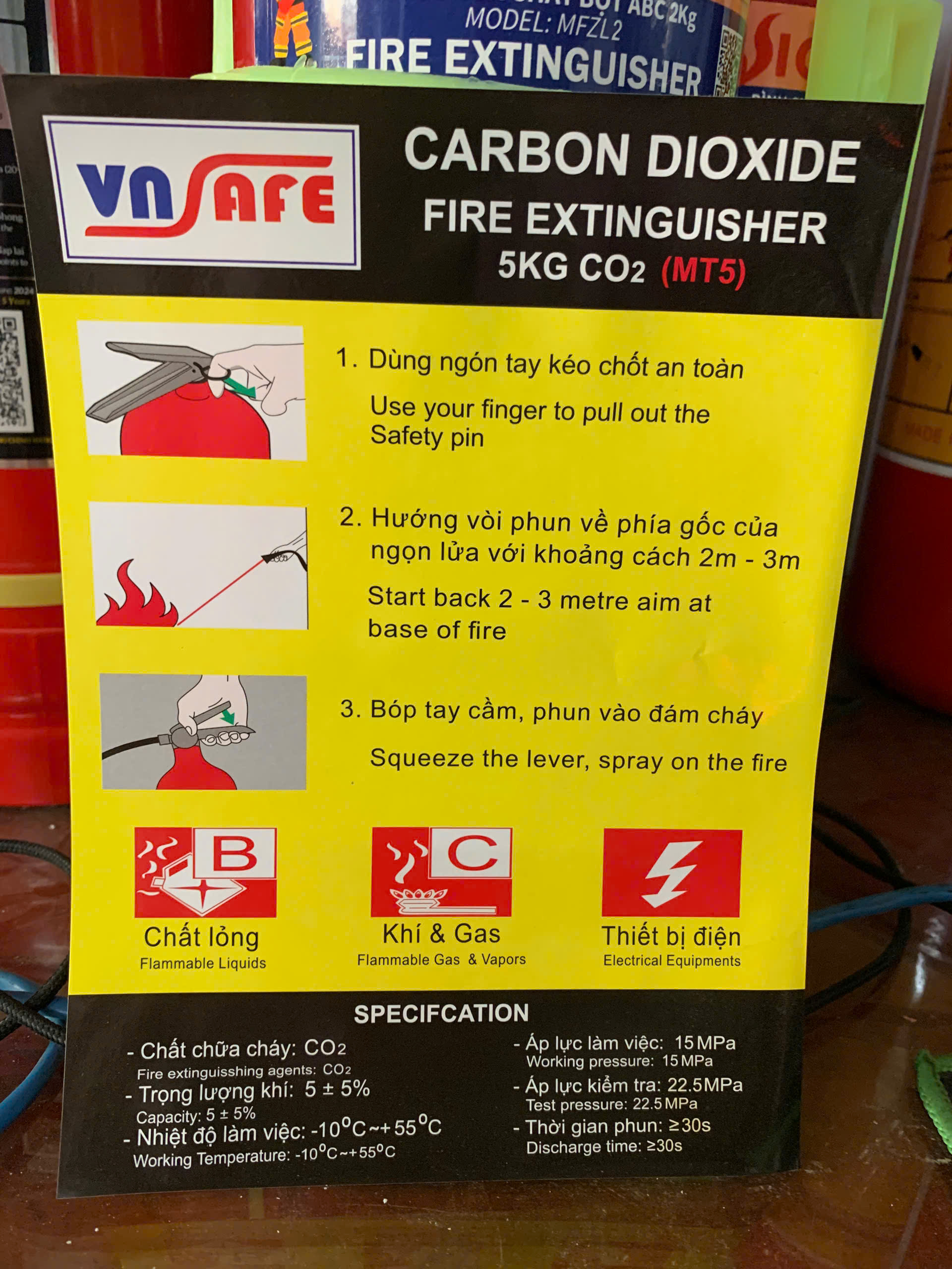 Tem cảnh báo ghi rõ nguy cơ phát sinh khí độc, nguy cơ bỏng lạnh khi sử dụng CO₂, hay cảnh báo nguy cơ điện giật nếu xịt nước vào thiết bị điện. Những thông tin này trực tiếp bảo vệ người sử dụng khỏi tai nạn thứ cấp.