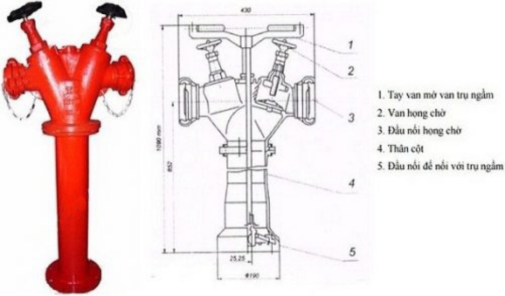 Thông số kỹ thuật trụ chữa cháy ngoài trời DN114 - (kèm chân trụ cứu hoả)