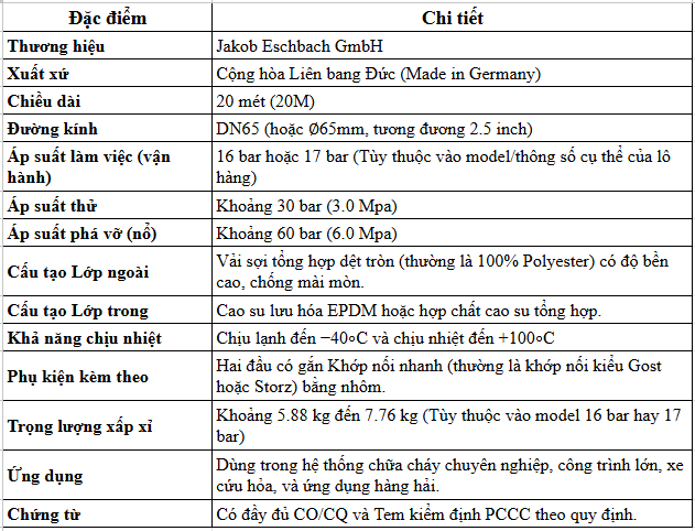 Thông Số Chi Tiết Của Cuộn Vòi Chữa Cháy Jakob Eschbach D65 x 20M